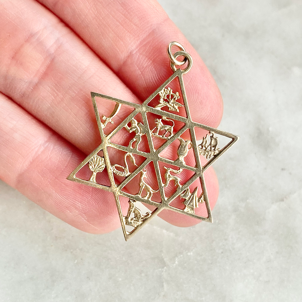 Vintage 1978 9ct gold large Star of David & 12 Tribes pendant/charm